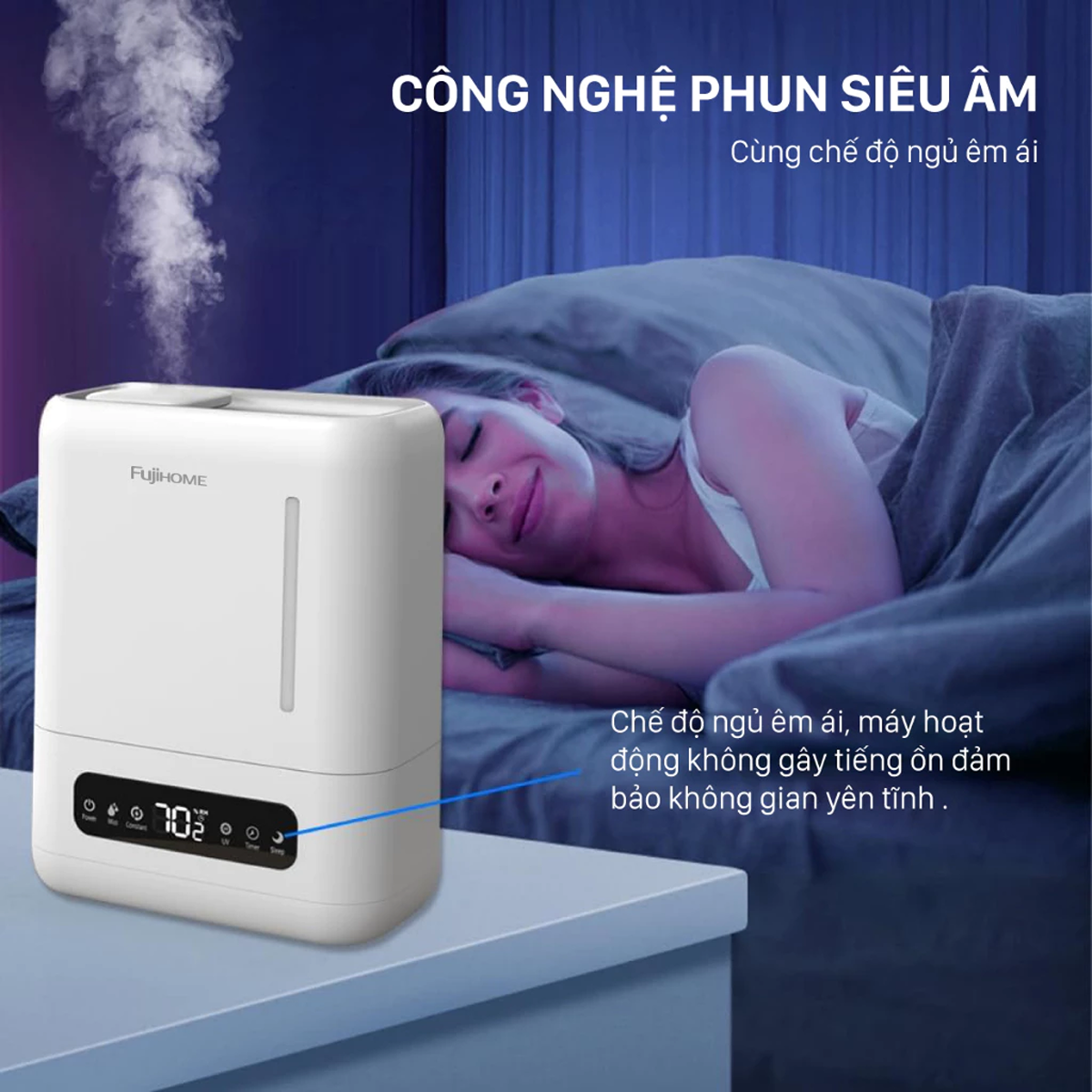 Bên cạnh đó, máy còn được trang bị công nghệ UV khử khuẩn giúp giảm thiểu sự phát triển vi khuẩn khuếch tán trong không khí. Hơn thế nữa, chức năng xông tinh dầu thông qua khay chứa chuyên dụng cho phép máy nhẹ nhàng khuếch tán hương thơm cùng với làn sương mỏng.