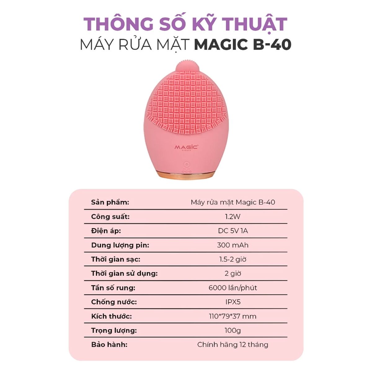 | Tiện ích | Làm sạch sâu với tần số rung 6000 lần/phút |