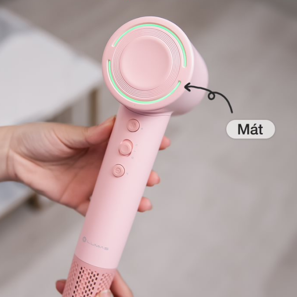 -  Tùy chỉnh nút nhiệt độ sấy với 4 màu (Nóng là màu đỏ, màu cam là sấy ấm, màu xanh lá sấy lạnh và màu vàng là chế độ nóng lạnh luân phiên)
