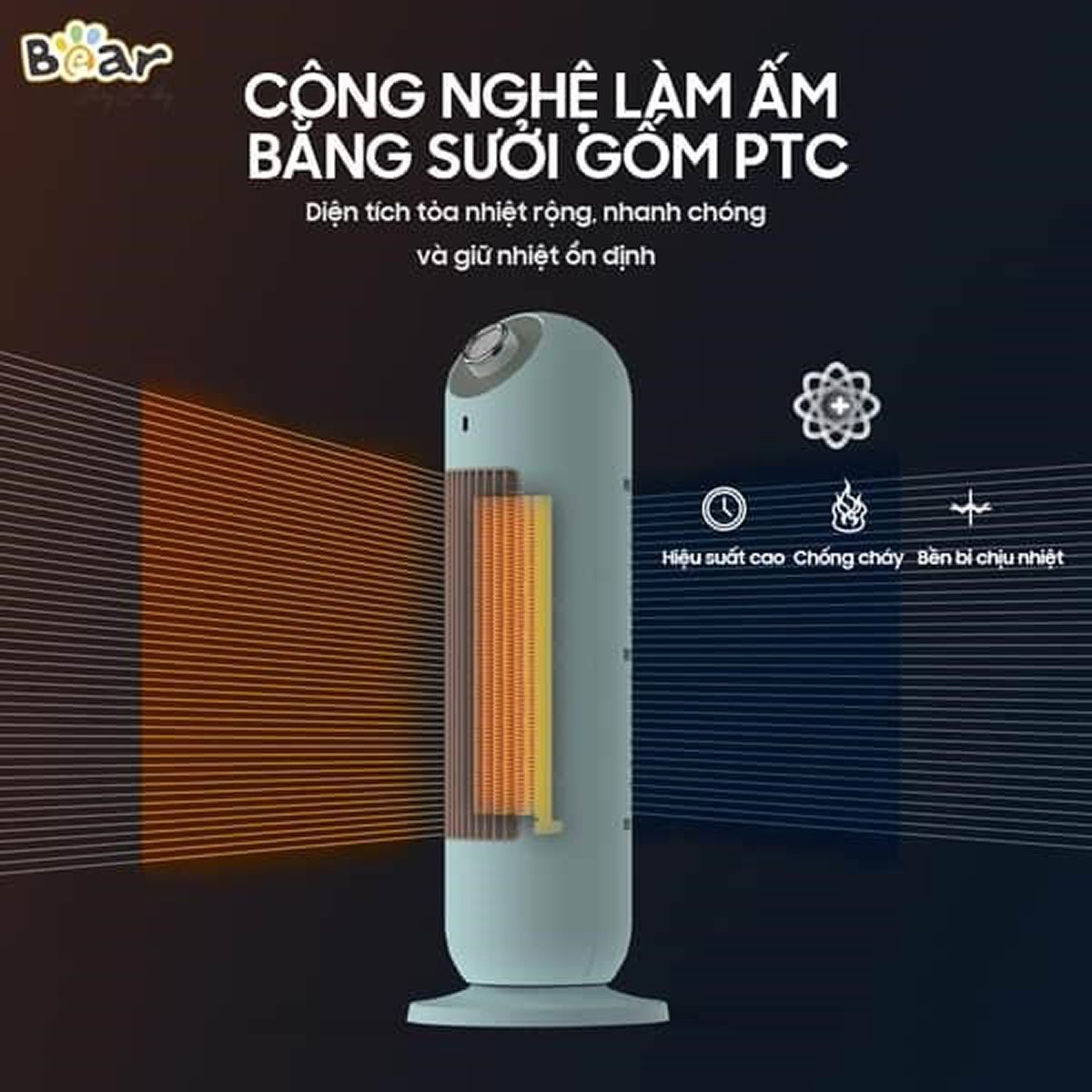 Nhờ hệ thống sưởi dọc và đặc tính không đốt cháy oxy của công nghệ PTC, không khí giữ được độ thoáng, hạn chế khô, tránh tạo cảm giác bí bách cho người dùng. Bên cạnh đó, máy còn đi kèm công nghệ ngăn quá nhiệt, giảm nguy cơ cháy nổ nên người dùng có thể yên tâm sử dụng trong nhiều không gian khác nhau.