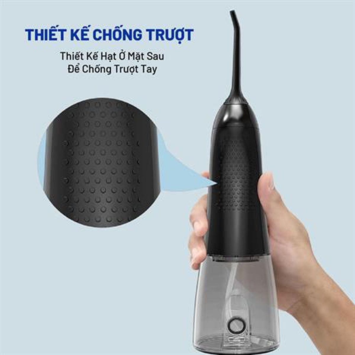 Sản phẩm sở hữu thiết kế bình chứa nước có thể tháo rời hỗ trợ việc vệ sinh trở nên nhanh chóng và tiện lợi hơn. Dung tích lớn 300ml đáp ứng tốt nhu cầu sử dụng hằng ngày mà không cần châm nước liên tục. Đầu xịt có thể xoay 360°, cho phép điều chỉnh linh hoạt để làm sạch các vị trí trong khoang miệng.