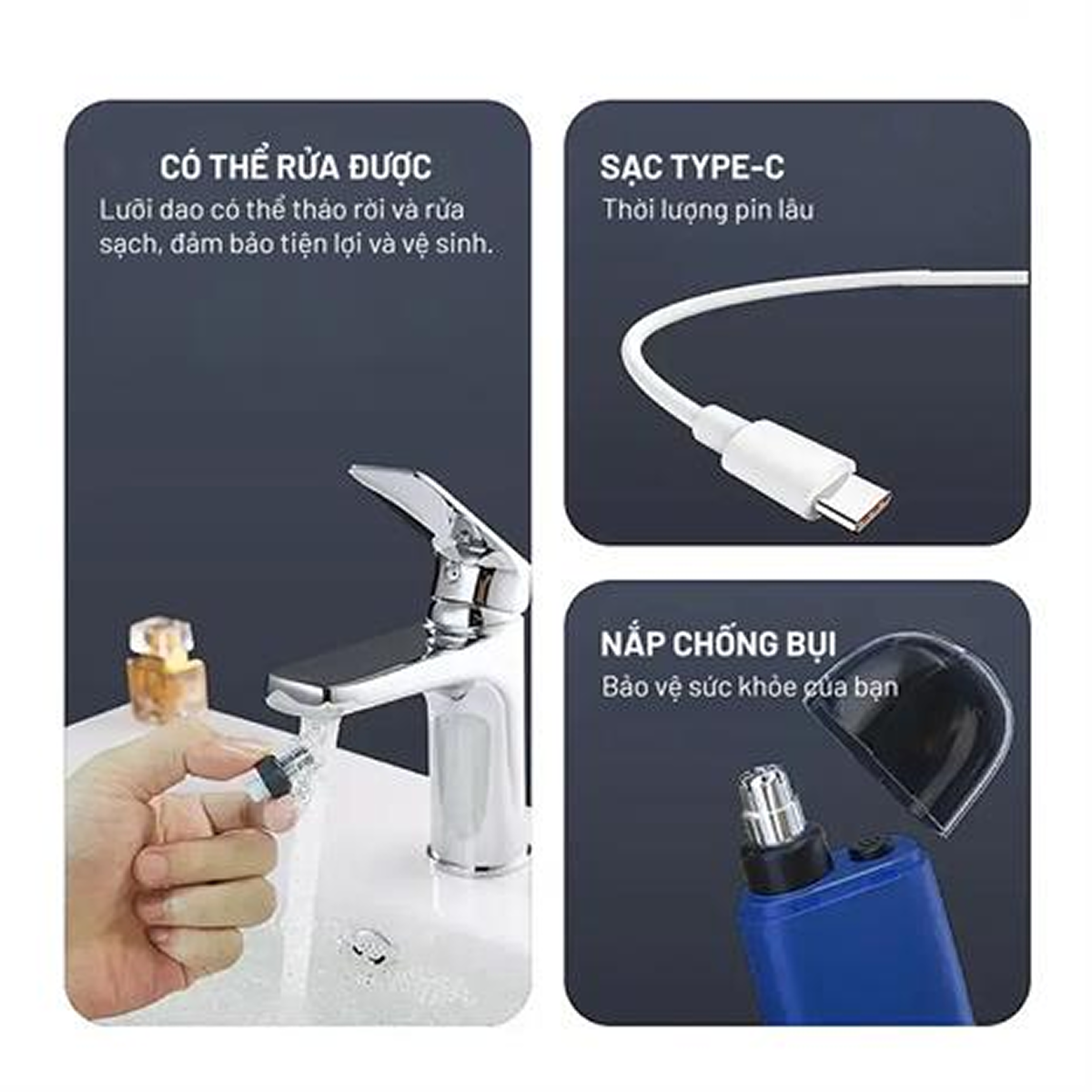 Sau khi được sạc đầy, thiết bị có thể vận hành tỉa lông bền bỉ trong nhiều lần sử dụng. Thiết kế lưỡi dao có thể tháo rời giúp dễ vệ sinh, đi kèm nắp chống bụi để bảo vệ phần đầu tỉa khi không sử dụng. Các tiện ích này góp phần kéo dài tuổi thọ cho máy và đảm bảo vệ sinh cá nhân tối ưu.
