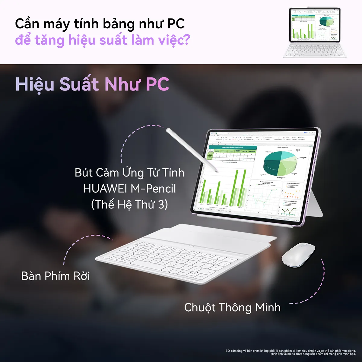 Tablet còn đi kèm bàn phím rời cùng WPS Office chuẩn PC, giúp thao tác nhập liệu nhanh chóng và hỗ trợ làm việc hiệu quả. Tính năng chia đôi màn hình, cửa sổ động và SuperHub mang lại khả năng đa nhiệm linh hoạt. Ngoài ra, kết nối Wi-Fi cũng được nâng cấp với hiệu suất truyền tải tăng 30%, đảm bảo độ ổn định.