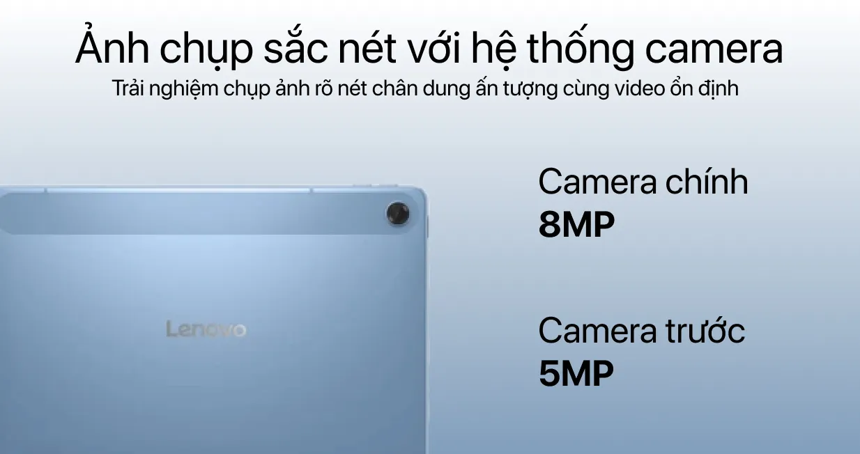 Máy tính bảng Lenovo Tab 4G ZAEJ0139VN kèm bao da được trang bị camera sau 8MP và camera trước 5MP. Chất lượng hình ảnh từ camera trước đủ rõ nét, màu sắc trung thực trong điều kiện ánh sáng tốt, phù hợp với học sinh, sinh viên hoặc người dùng làm việc từ xa.