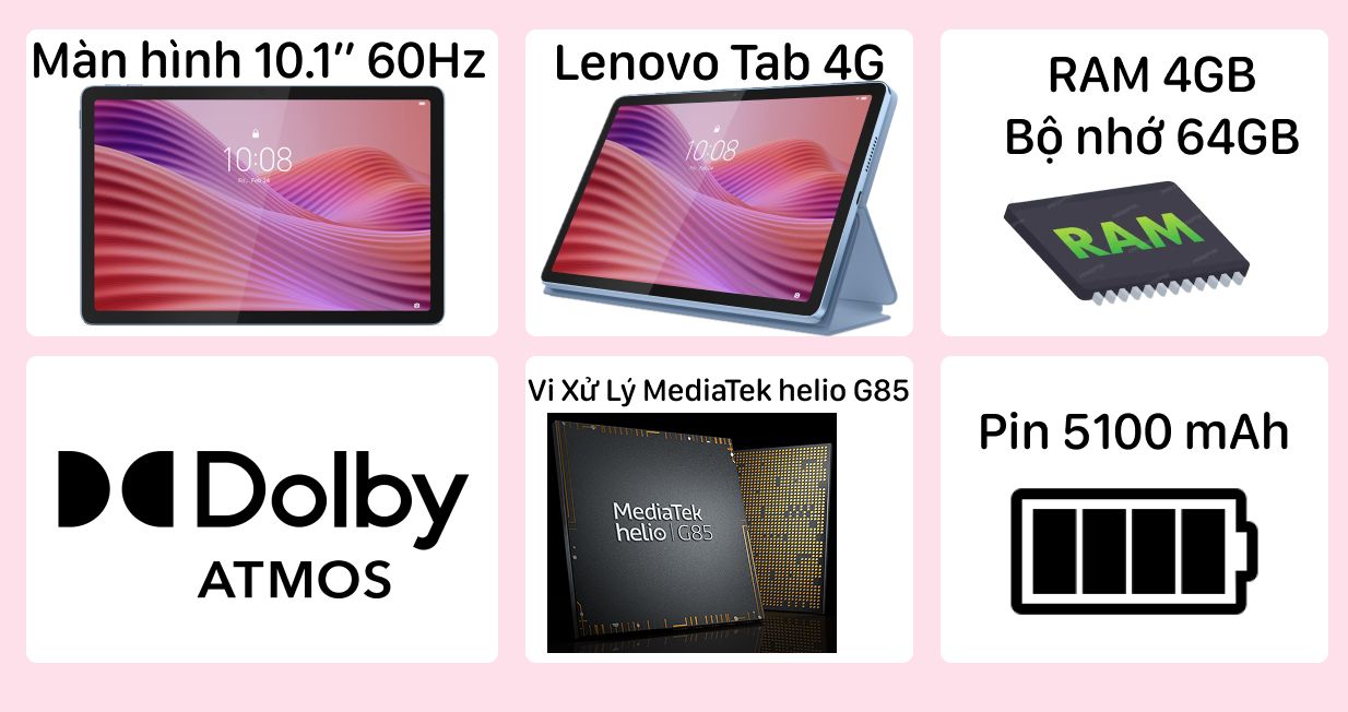 Máy tính bảng Lenovo Tab 4G ZAEJ0139VN kèm bao da là lựa chọn phù hợp cho người dùng cần một thiết bị giải trí và làm việc di động với hiệu suất ổn định. Nhờ màn hình lớn, âm thanh sống động và khả năng kết nối đa dạng, thiết bị máy tính bảng Lenovo này đáp ứng tốt nhu cầu học tập, làm việc.