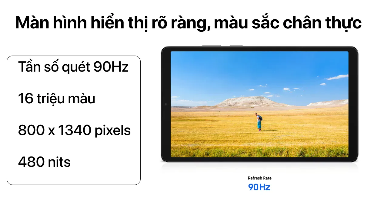 Đặc biệt, màn hình có khả năng duy trì độ sáng rõ ràng ngay cả dưới ánh sáng trực tiếp, đảm bảo nội dung hiển thị không bị mờ hoặc khó nhìn. Chính vì vậy, tablet Samsung A11 trở thành lựa chọn lý tưởng cho việc học tập, giải trí và làm việc di động của nhiều nhóm người dùng, từ học sinh, sinh viên đến người dùng văn phòng.