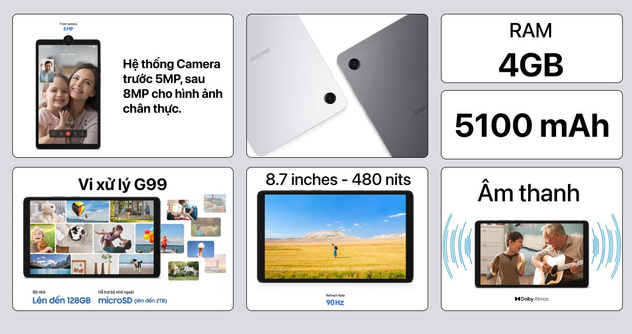 Tablet Samsung A11 mang đến sự cân bằng giữa thiết kế hiện đại và hiệu năng tối ưu cho nhu cầu học tập, làm việc và giải trí hằng ngày. Sự kết hợp giữa phần cứng ổn định và phần mềm Android thân thiện của model Samsung tablet này đảm bảo trải nghiệm liền mạch.
