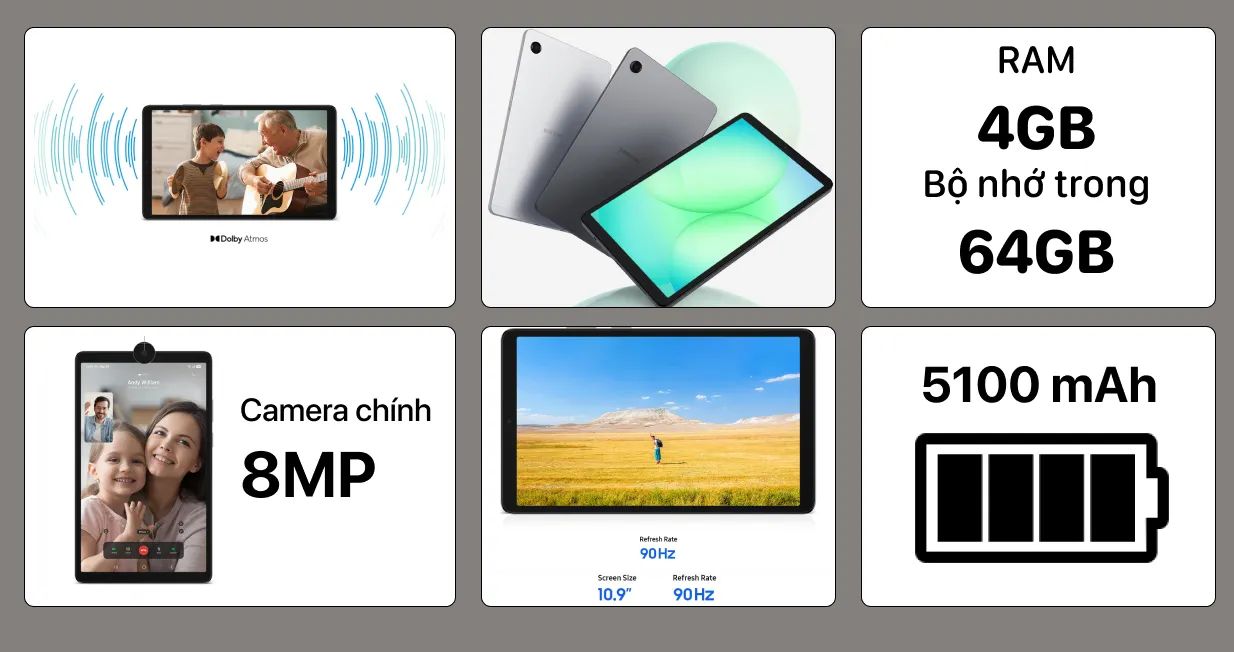Với cấu hình này, máy tính bảng Samsung Galaxy Tab A11 WiFi đáp ứng tốt nhu cầu học tập và giải trí cơ bản. Dù không phù hợp với các game nặng hoặc đa nhiệm phức tạp, nhưng trải nghiệm tổng thể vẫn mượt mà. Điều này đặc biệt khi kết hợp cùng giao diện One UI được tối ưu hóa, giúp người dùng không gặp vấn đề giật lag.