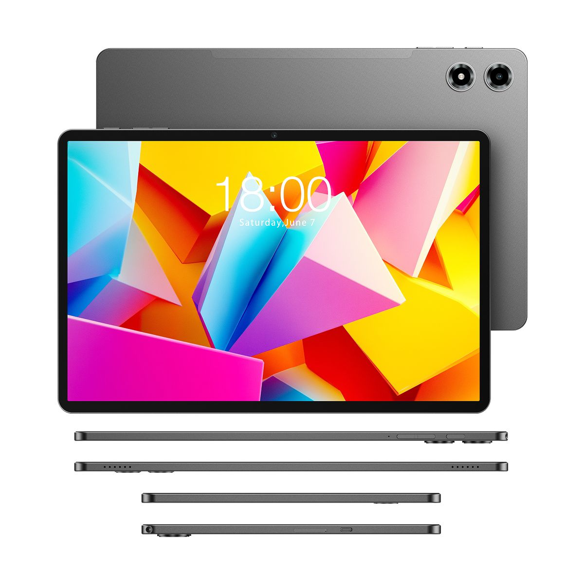Thiết kế unibody của máy tính bảng Teclast T50 Plus cũng gây ấn tượng với độ mỏng chỉ 7.9mm và khối lượng nhẹ 520g. Máy tính bảng mang phong cách sang trọng, với các góc cạnh được bo tròn tinh tế và viền màn hình mỏng, giúp tối ưu diện tích hiển thị. Do đó, đây sẽ là thiết bị lý tưởng cho những ai thường xuyên di chuyển và muốn mang theo một chiếc tablet gọn nhẹ nhưng vẫn đầy đủ tính năng.