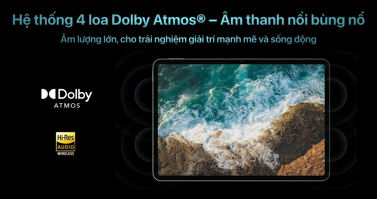 Trang bị hệ thống 4 loa flagship, máy tính bảng Xiaomi Pad 8 Pro hỗ trợ công nghệ âm thanh thích ứng theo khoảng cách. Thiết bị tự động tinh chỉnh cường độ âm thanh dựa trên vị trí của người dùng giúp các dải âm luôn giữ được độ chi tiết. Tiêu chuẩn Dolby Atmos mang đến không gian âm nhạc sống động và tái tạo chân thực.