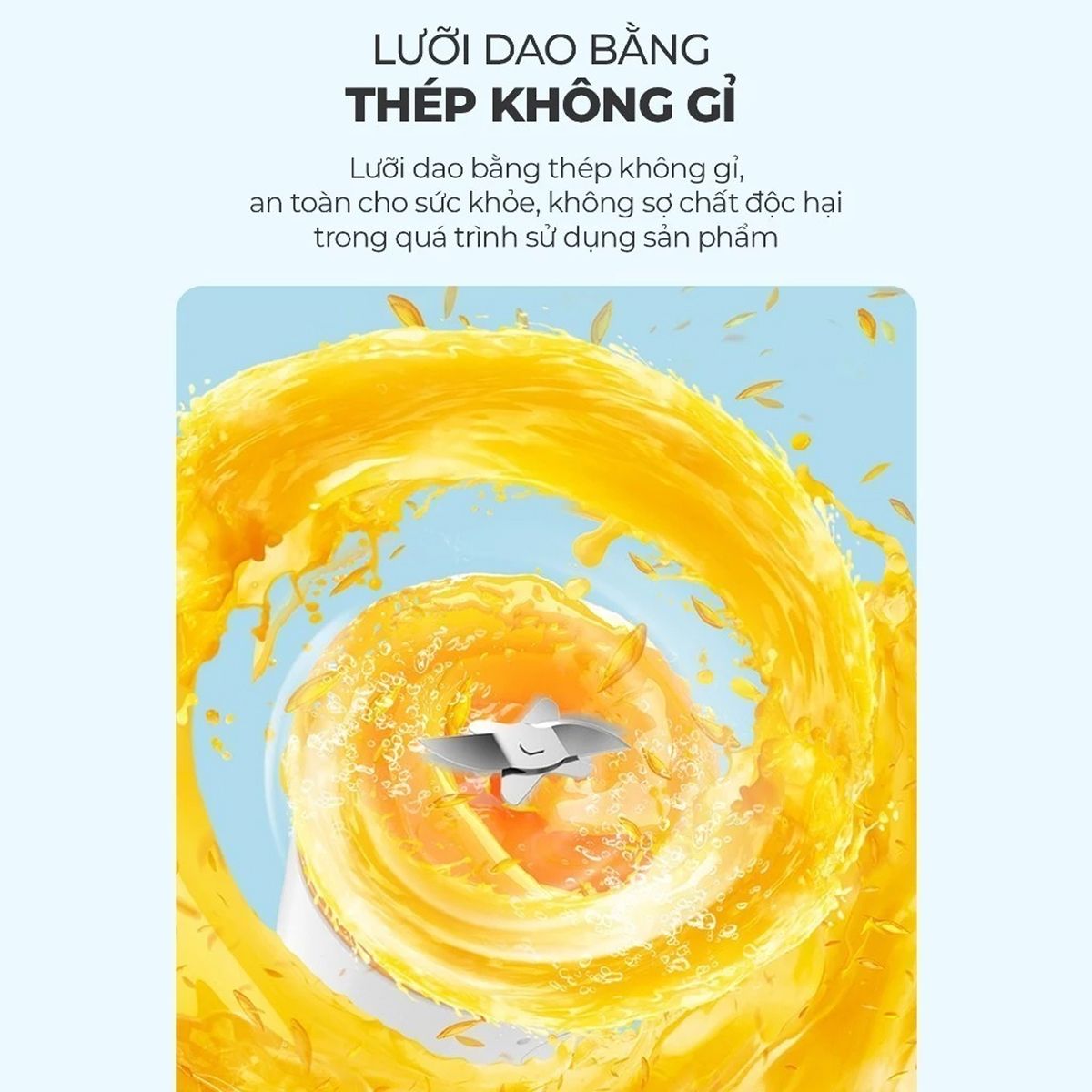 Sản phẩm còn tích hợp chốt bảo vệ để đảm bảo thiết bị chỉ hoạt động khi các bộ phận đã được lắp ráp khớp với nhau. Các bộ phận như bình chứa và lưỡi dao có thể tháo rời dễ dàng, tạo điều kiện thuận lợi cho việc vệ sinh sau mỗi lần sử dụng. Việc làm sạch nhanh chóng không chỉ duy trì độ bền cho máy mà còn đảm bảo vệ sinh an toàn thực phẩm.