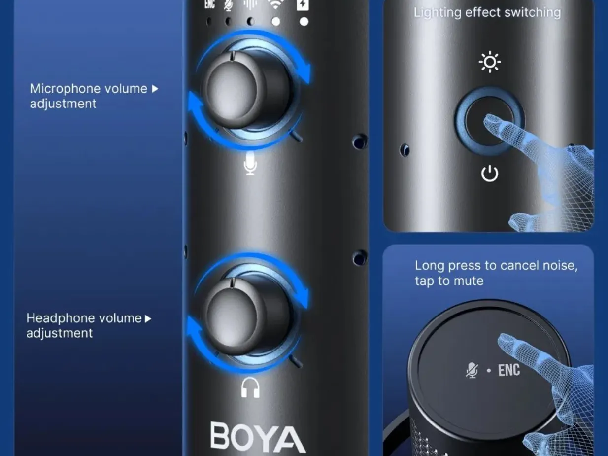 Microphone thu âm Boya K5 màng thu 14 mm, dải tần 20 Hz–20 kHz, tích hợp chip DSP, AI kiểm soát độ khuếch đại và công nghệ khử ồn. Bên cạnh đó, chiếc microphone Boya này còn sở hữu hiệu ứng ánh sáng RGB độc đáo. Ngoài ra, K5 hỗ trợ kết nối linh hoạt gồm USB-C có dây và không dây qua receiver tùy nhu cầu.
