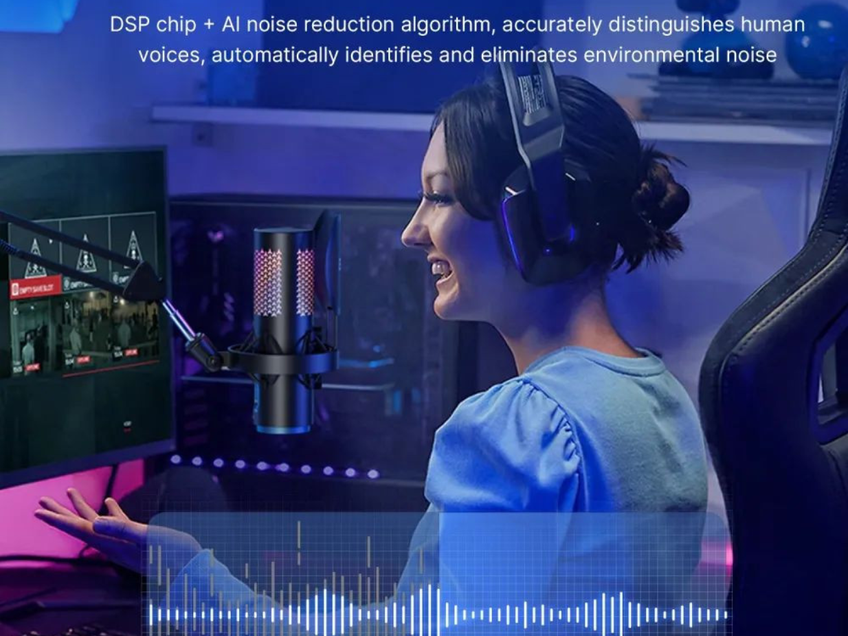 Thêm vào đó, microphone này còn tích hợp chip DSP, đảm nhiệm việc phân tích và xử lý tín hiệu âm thanh khi thu vào. Bộ chip này giúp loại bỏ nhiễu nền, đồng thời giữ nguyên độ tự nhiên của giọng nói. Ngoài ra, AI tự động điều chỉnh độ khuếch đại, hạn chế méo tiếng và dao động âm lượng.