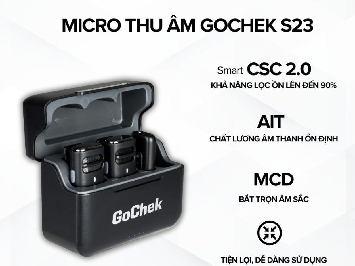 Microphone thu âm không dây Gocheck Ultra S23 S23D2 Lightning - Ngoại hình nhỏ gọn, pin trâu