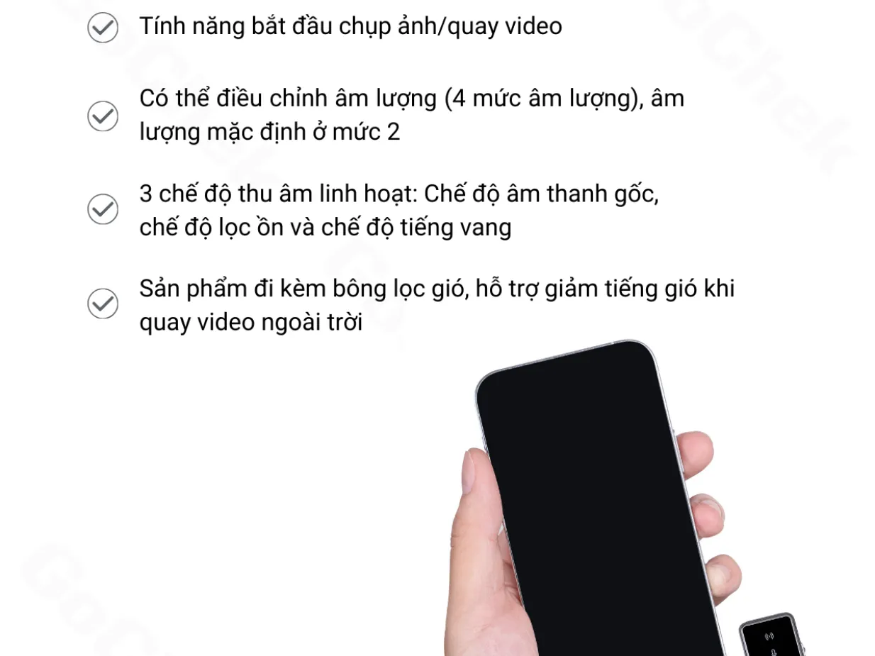 GoChek Ultra S24 sử dụng hệ thống lọc âm đa tầng kết hợp thuật toán xử lý giúp nhận diện và giảm thiểu đáng kể tạp âm môi trường. Cơ chế thu âm định hướng được tích hợp sẽ giúp micro không giây ưu tiên thu giọng nói và hạn chế ảnh hưởng từ các âm thanh khác.