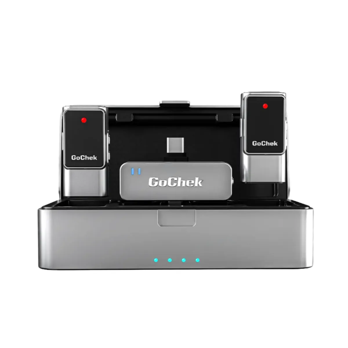 Thời lượng pin microphone thu âm không dây Gochek Ultra S25 S2503Hộp sạc mang lại hàng giờ ghi âm liên tục