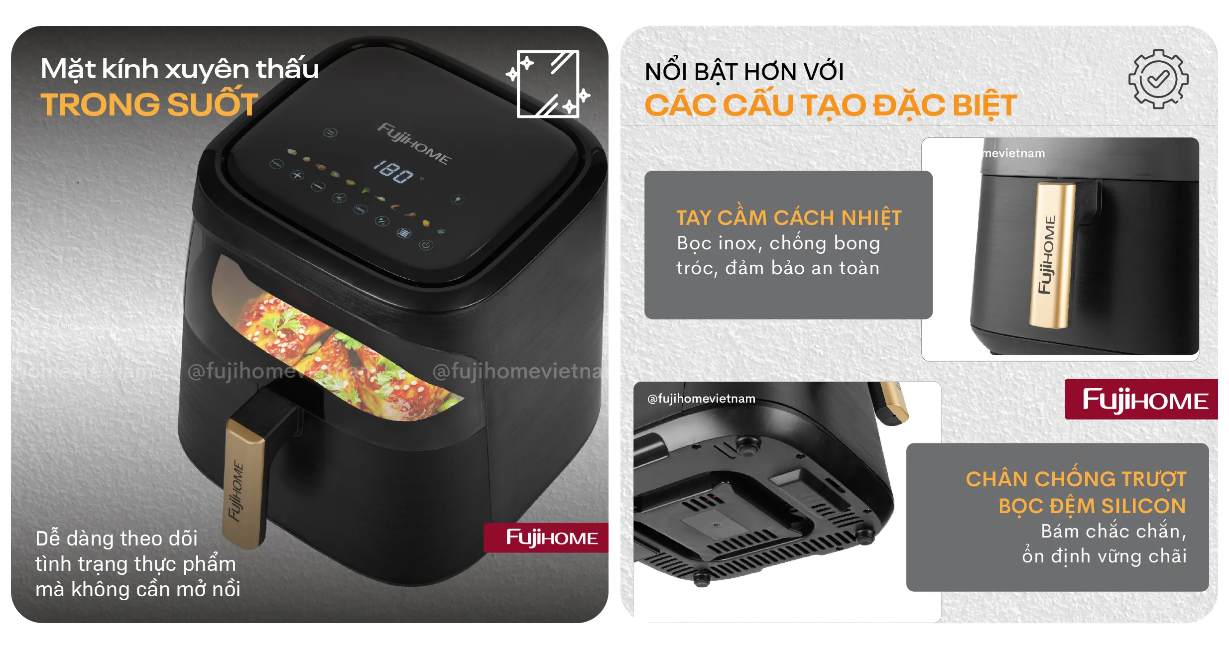Nồi chiên không dầu Fujihome A8DG1 8L mang đến giải pháp nấu nướng tiện lợi và lành mạnh cho gia đình. Dung tích lớn cho phép chế biến lượng thức ăn đủ cho nhiều người. Ngoài ra, công nghệ chiên không dầu giúp giảm lượng chất béo và bảo vệ sức khỏe.