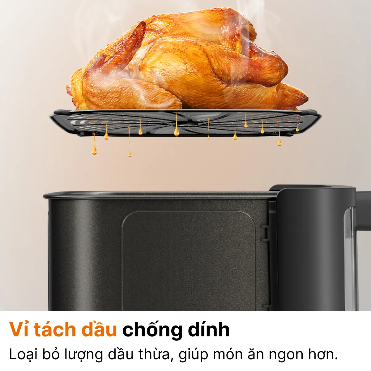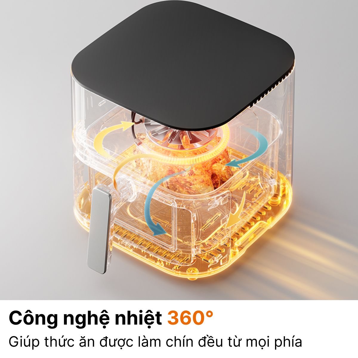 Công nghệ luân chuyển khí nóng 360° tạo luồng khí nóng lưu chuyển liên tục trong khoang nồi. Từ đó, nồi giúp món ăn chín kỹ, giữ được độ giòn tự nhiên và hạn chế được việc dùng dầu mỡ. Sản phẩm mang đến hiệu quả ấn tượng, giúp việc nấu nướng trở nên nhanh chóng và hiệu quả hơn.
