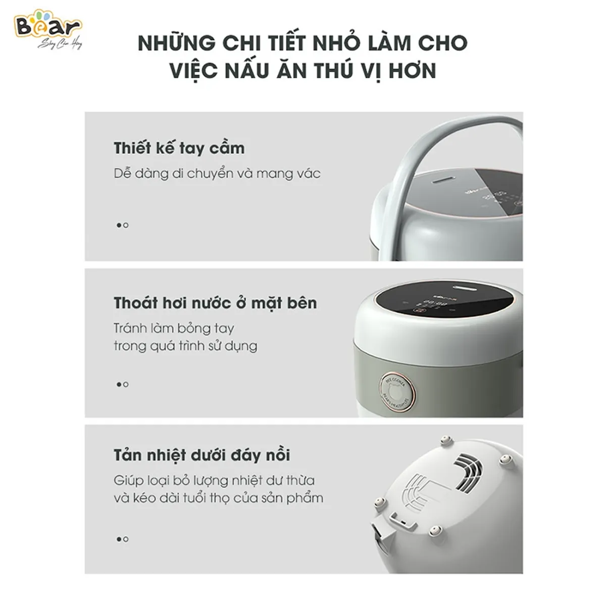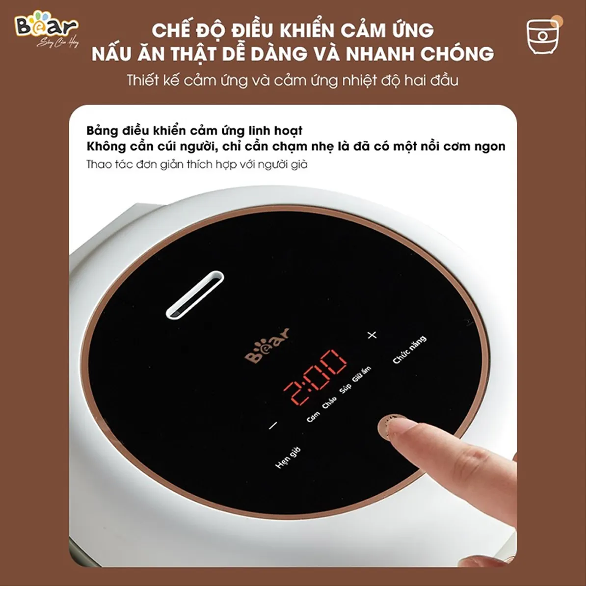 Tiện ích | Hẹn giờ 12 tiếng, Màn hình LED cảm ứng dễ thao tác, Thiết kế nhỏ gọn, có xửng hấp |