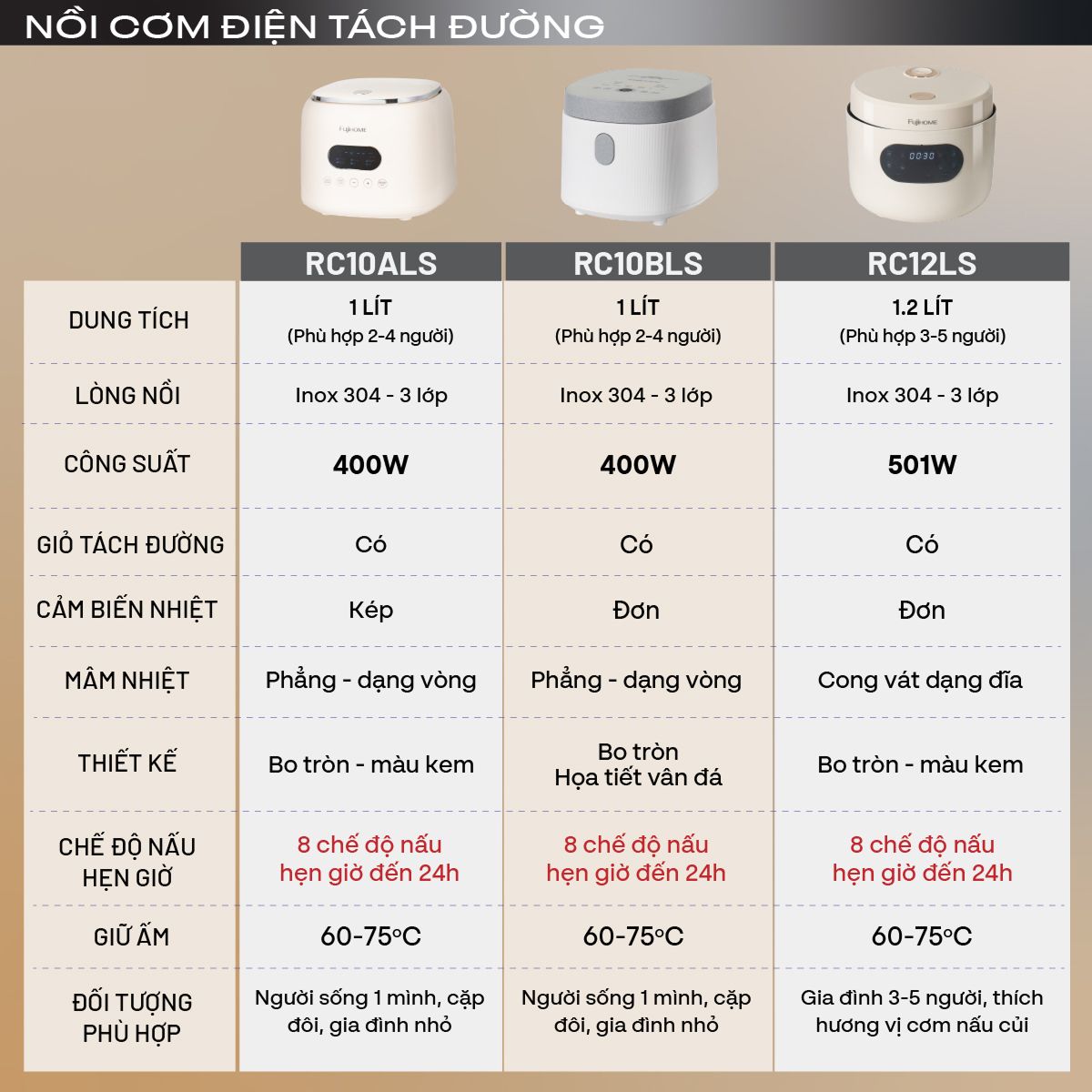 | Loại nồi | Nồi cơm điện tách đường, Nồi cơm điện tử |