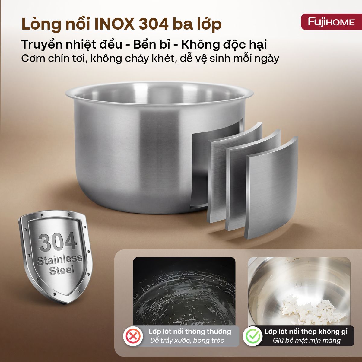 | Chất liệu lòng nồi | Inox 304 - 3 lớp |
