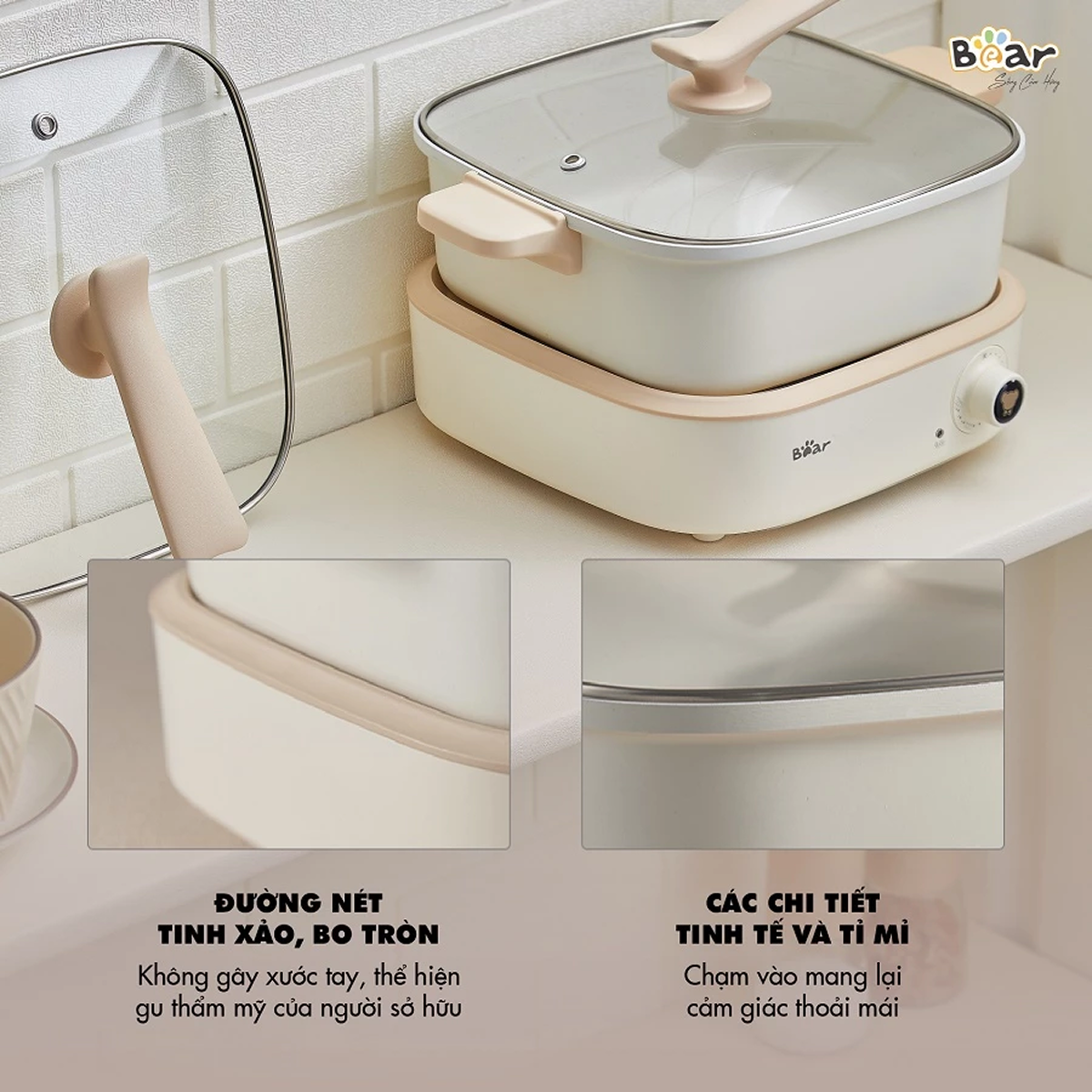 Nồi lẩu điện Bear DHG-C40M1 sở hữu kiểu dáng vuông độc đáo, giúp tăng diện tích chế biến, đồng thời mang đến sự khác biệt so với những chiếc nồi truyền thống thường. Sản phẩm được phủ lớp chống dính ba chiều tổ ong Tỳ Hưu cao cấp, hạn chế bám dính thực phẩm và dễ dàng vệ sinh sau khi sử dụng.