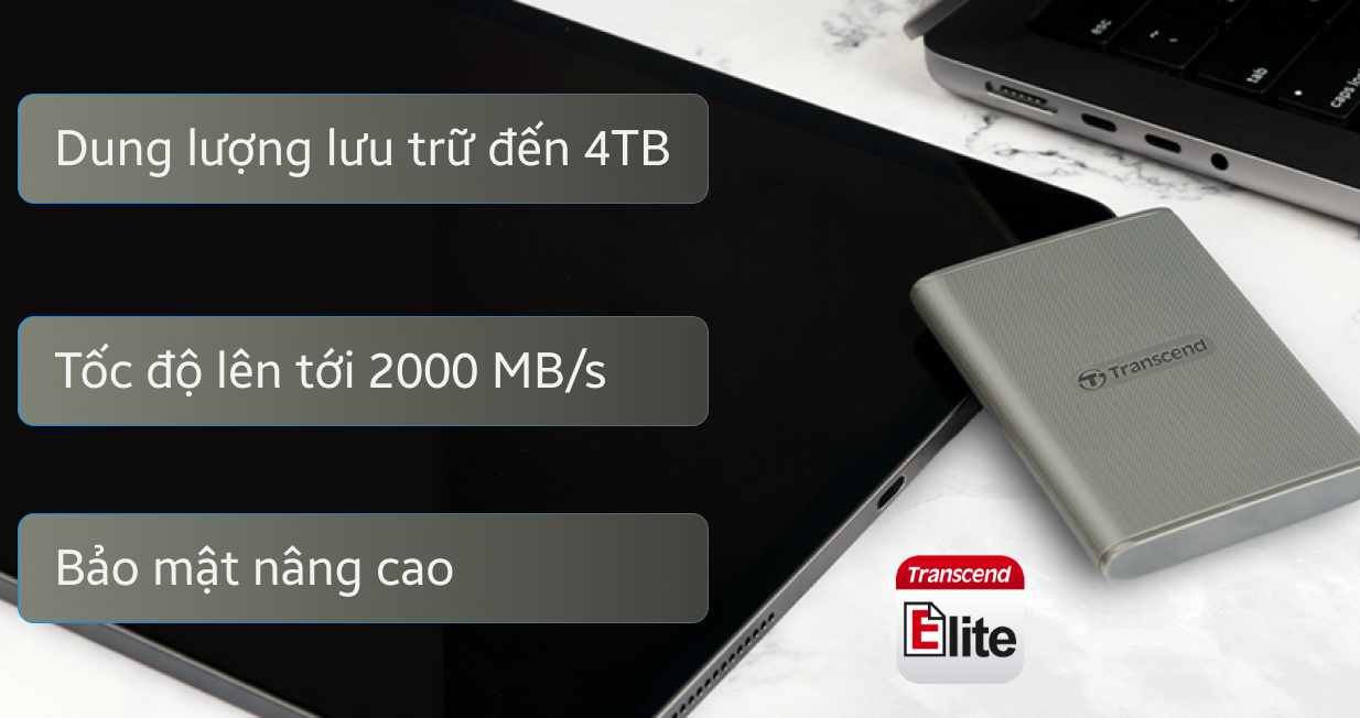 Nếu bạn đang tìm kiếm ổ cứng rời với tốc độ truyền tải nhanh cùng không gian lưu trữ lớn thì đừng bỏ qua Transcend ESD360C. Mẫu SSD di động với bộ nhớ 4TB hứa hẹn sẽ là người bạn đồng hành lý tưởng cho người làm thiết kế hay nhà sáng tạo nội dung có nhu cầu lưu trữ cao.