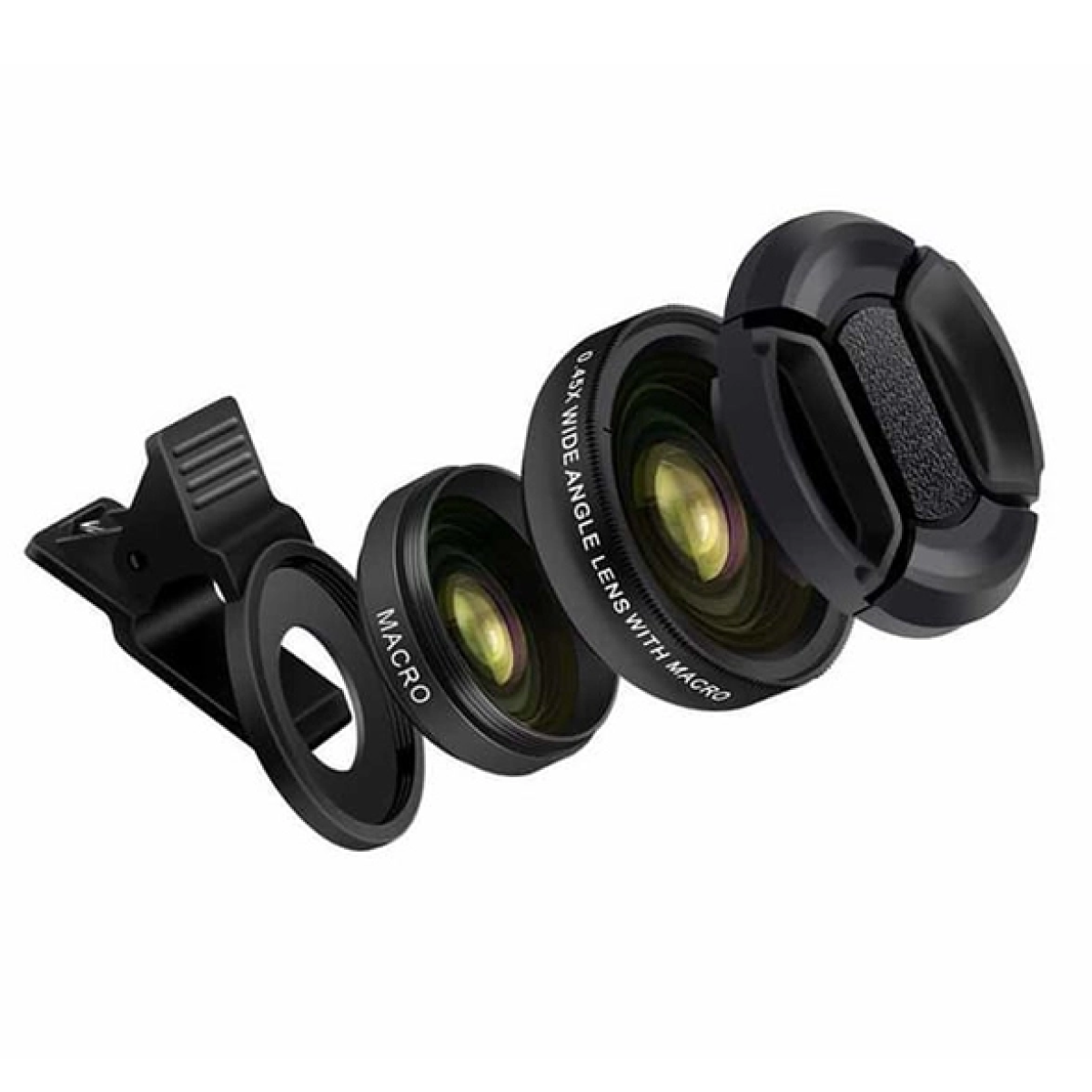 Với thiết kế tiện lợi, phù hợp với đa số các dòng điện thoại thông minh, iPad, máy tính bảng. Ngoài sản phẩm ống kính kết hợp macro góc rộng 0,45X còn có phụ kiện đi kèm như bộ chuyển đổi, kẹp ống kính, nắp, túi kháng nước và vải lau. Phụ kiện đầy đủ giúp người dùng tiện bảo quản và mang theo trong suốt các chuyến đi dài.