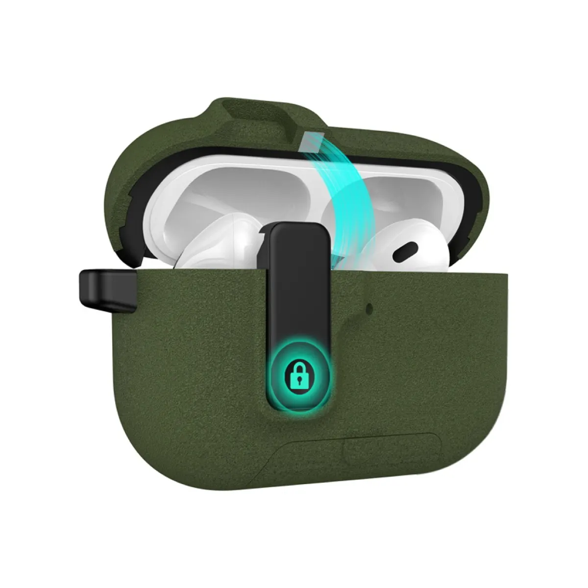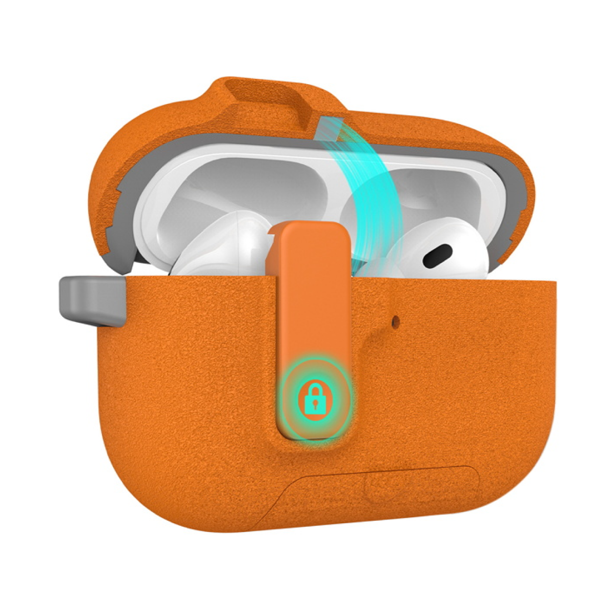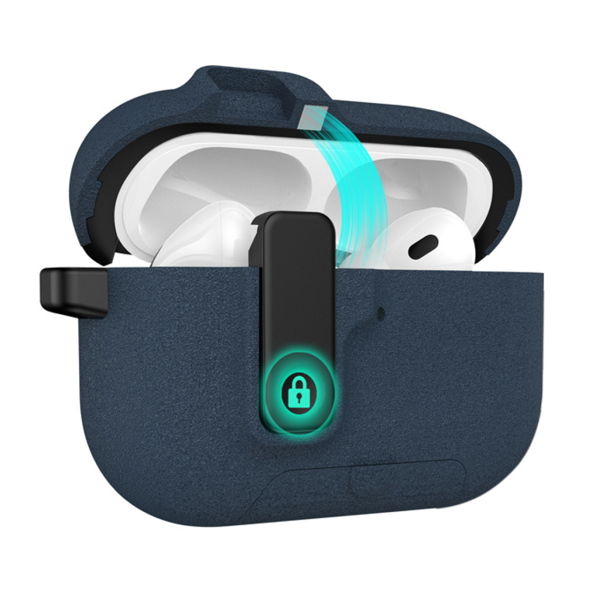 Cơ chế khóa chắc chắn giúp nắp hộp AirPods luôn đóng chặt, tăng cường khả năng bảo vệ. Ngoài ra, phần đế được thiết kế thông minh cho phép ốp sử dụng như giá đỡ điện thoại khi đặt ngang, nâng cao tính ứng dụng cho người dùng.