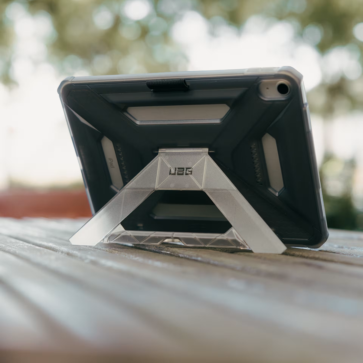 Chân đế cũng được trang bị cho sản phẩm ốp lưng iPad 11 A16 inch UAG Scout Plus giúp tạo góc nhìn phù hợp cho xem phim, gõ văn bản hoặc học tập. Chân đế hoạt động ổn định và hỗ trợ thiết bị đứng chắc ở nhiều bề mặt khác nhau.