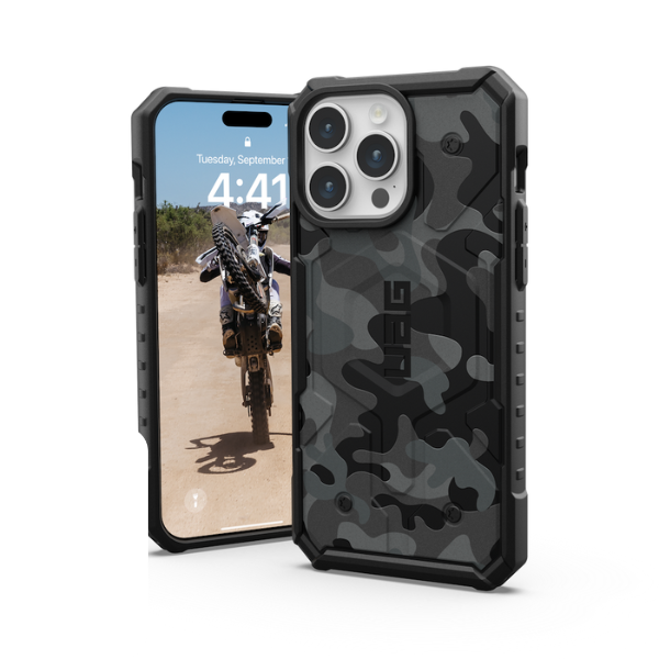 Ốp lưng iPhone 15 Pro UAG chống sốc Pathfinder SE Geo Camo có thiết kế vỏ ốp chống va đập tối đa, chịu được sự va chạm hàng ngày. Đây chính là thiết kế đạt tiêu chuẩn quân đội, điện thoại vẫn được an toàn khi thả rơi trên độ cao 5.4m.