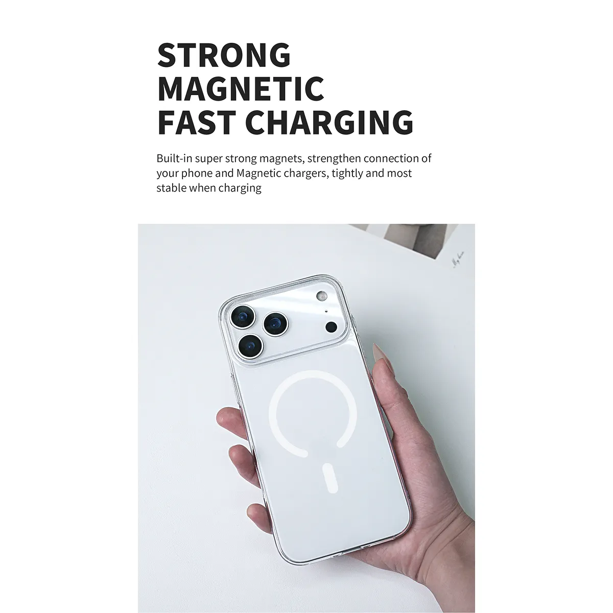 Nam châm siêu mạnh được tích hợp bên trong ốp lưng iPhone 17 Pro Max Mipow Button Control Tempered Glass With Magsafe Transparent trong suốt tăng cường độ kết nối. Sự ổn định được đảm bảo hơn trong quá trình sạc không dây Magsafe nhờ thiết kế định vị chính xác và giữ vị trí cố định.