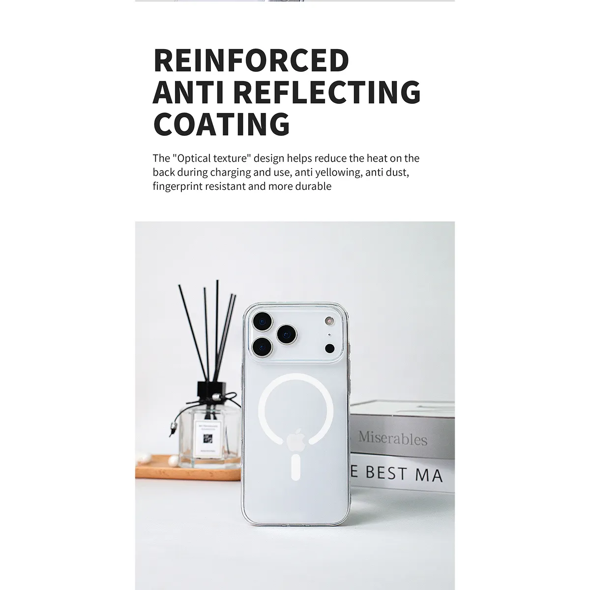 Cấu trúc bề mặt đặc biệt được thiết kế để hỗ trợ tản nhiệt hiệu quả trong quá trình sạc và vận hành thiết bị. Bề mặt có lớp phủ hạn chế bám bụi và vân tay, do đó ốp lưng duy trì vẻ ngoài gọn gàng, sáng mới. Nhờ đó, vẻ đẹp tự nhiên của iPhone 17 Pro Max được tôn lên mà không bị che khuất bởi lớp bảo vệ.