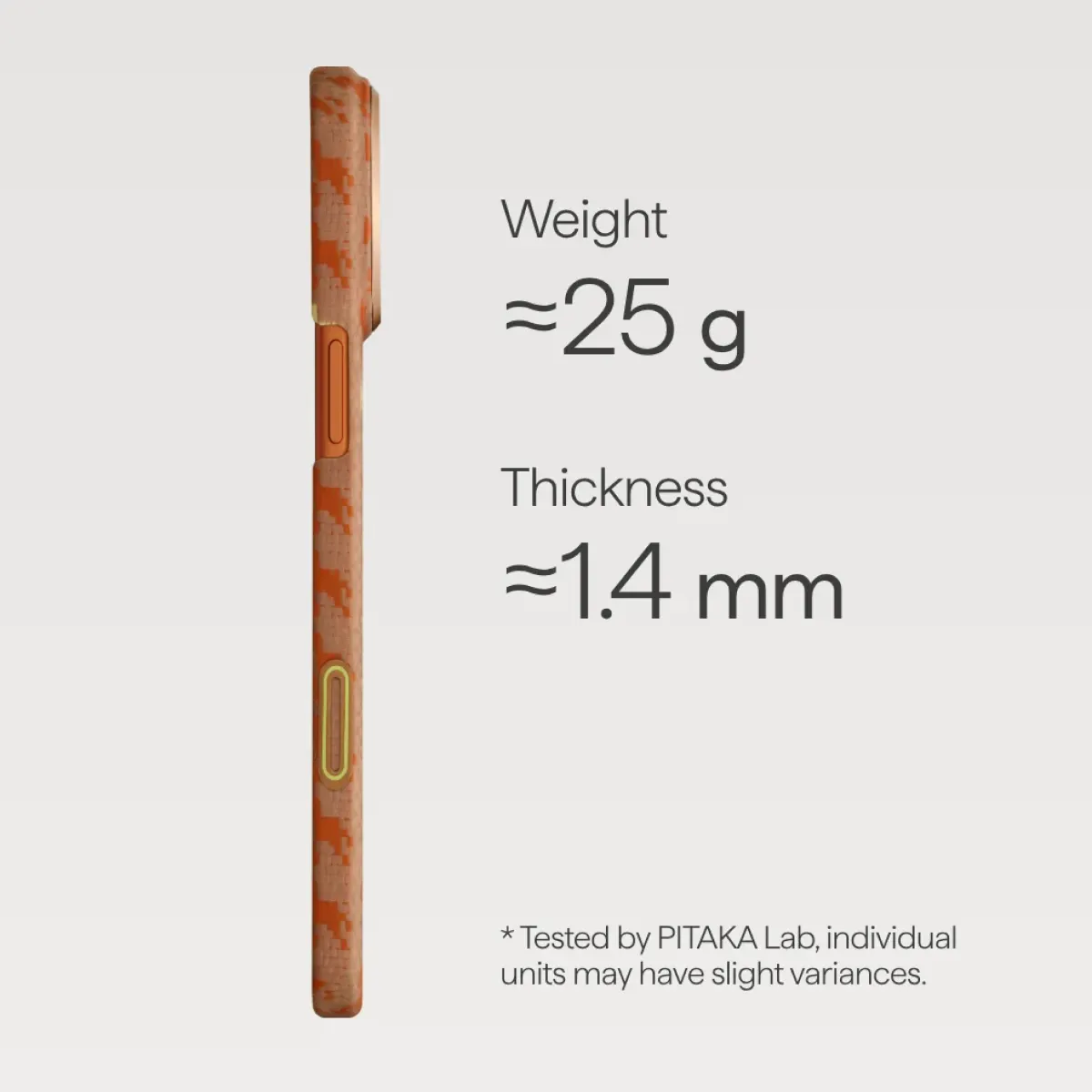 Ốp lưng iPhone 17 Pro Pitaka Edge Happiness Rides In Amber được thiết kế chuyên biệt để trở thành lớp giáp kiên cố, bảo vệ điện thoại trước nhiều tình huống. Nhờ cấu trúc chế tác từ sợi Aramid từ ngành hàng không, mẫu ốp lưng này có khả năng bảo vệ thiết bị hiệu quả.