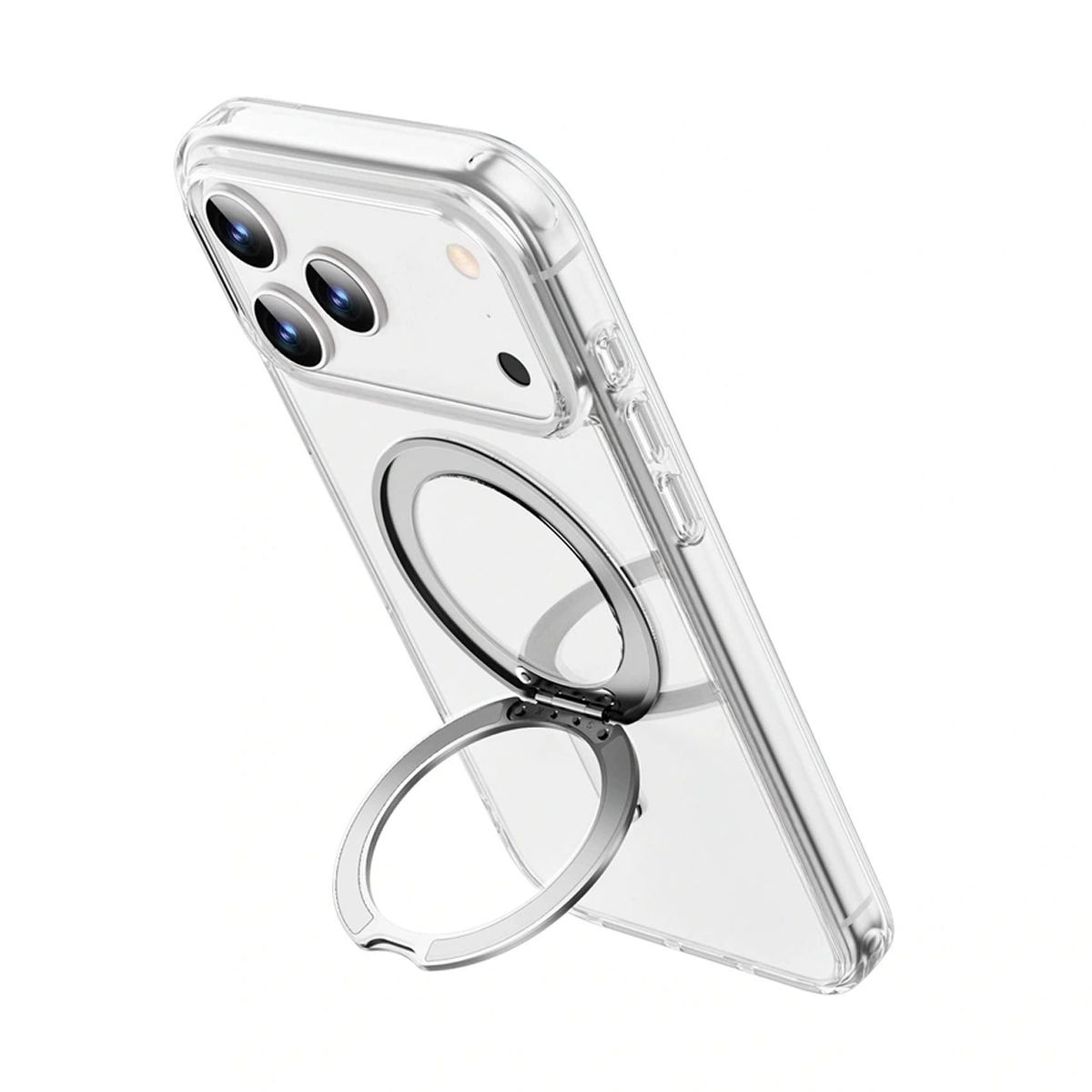Điểm nhấn nổi bật của sản phẩm chính là giá đỡ xoay 360°, giúp người dùng dễ dàng điều chỉnh nhiều góc nhìn khác nhau. Ốp lưng được trang bị 2 nam châm từ tính ở đuôi, giúp tương thích hoàn hảo với sạc MagSafe và phụ kiện từ tính.