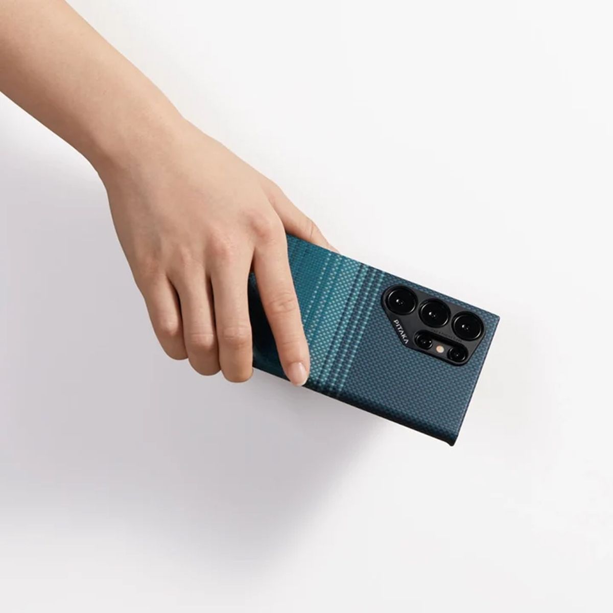 Ốp lưng Samsung Galaxy S25 Ultra Pitaka Tactile Woven được dệt từ sợi aramid để tạo cảm giác cầm nắm mượt mà, mịn màng. Chất liệu này còn có độ bền cao, giúp hạn chế tình trạng trầy xước và duy trì vẻ ngoài rực rỡ cho điện thoại.