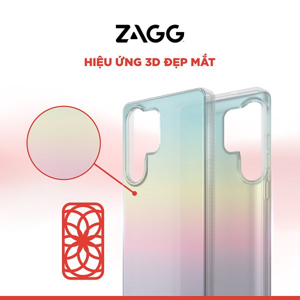 Zagg Milan gây ấn tượng với hiệu ứng chuyển màu óng ánh nhẹ nhàng và đầy cuốn hút. Thiết kế 2 lớp đồ họa tạo hiệu ứng 3D đa chiều mang lại vẻ ngoài sang trọng và tinh xảo.