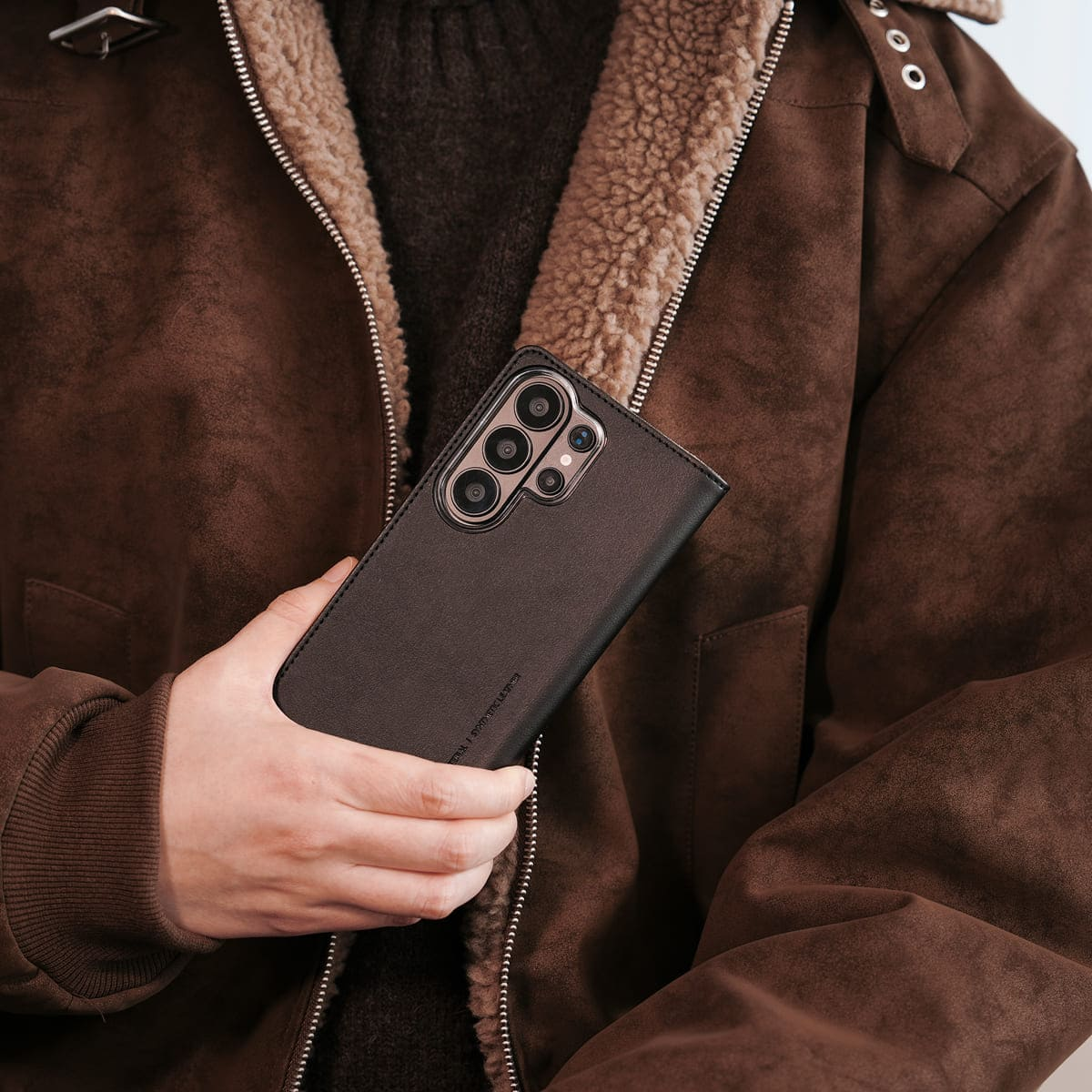 Sản phẩm sử dụng chất liệu da tổng hợp mềm mại, mang lại cảm giác cầm nắm êm ái và bám tay cho người dùng. Tông màu trầm ấm kết hợp cùng các đường chỉ khâu tỉ mỉ tạo nên một tổng thể sang trọng, phù hợp với phong cách lịch lãm của dòng flagship S26 Ultra.