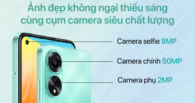 50 MP (chính) + 2 MP (Xóa phông)