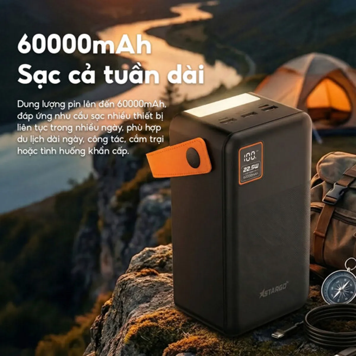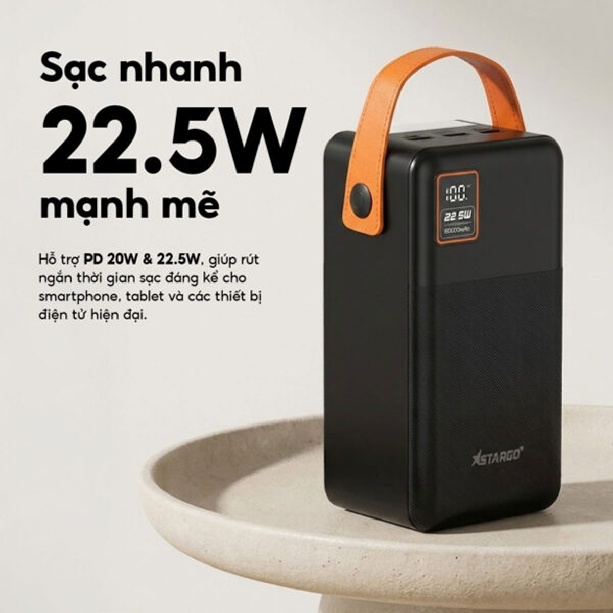 Pin dự phòng StarGO Power 60000mAh 22.5W nhiều cổng có đèn – Giải pháp năng lượng bền bỉ