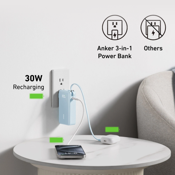 Pin sạc dự phòng Anker 10000mAh 30W tích hợp cáp USB-C có chân cắm A1637