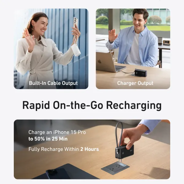 Khả năng chuyển đổi linh hoạt giữa chế độ pin di động và bộ sạc nhanh mang lại sự tiện lợi vượt trội trong mọi tình huống sử dụng. Với các thông số đầu ra đa dạng và hiệu suất cao, thiết bị đáp ứng tốt nhu cầu sạc nhanh cho nhiều loại thiết bị cùng lúc, tối ưu hóa thời gian, năng lượng và trải nghiệm sử dụng.
