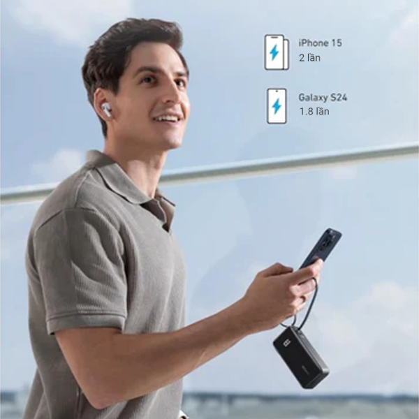 Dung lượng 10000mAh mang đến trải nghiệm sạc lâu dài, lý tưởng cho những chuyến đi xa, sử dụng hàng ngày tại văn phòng hay trong những chuyến dã ngoại. Mọi thiết bị luôn được duy trì kết nối và đầy năng lượng, đảm bảo hoạt động hiệu quả mọi lúc, mọi nơi, tạo sự tiện lợi tối đa cho người dùng.