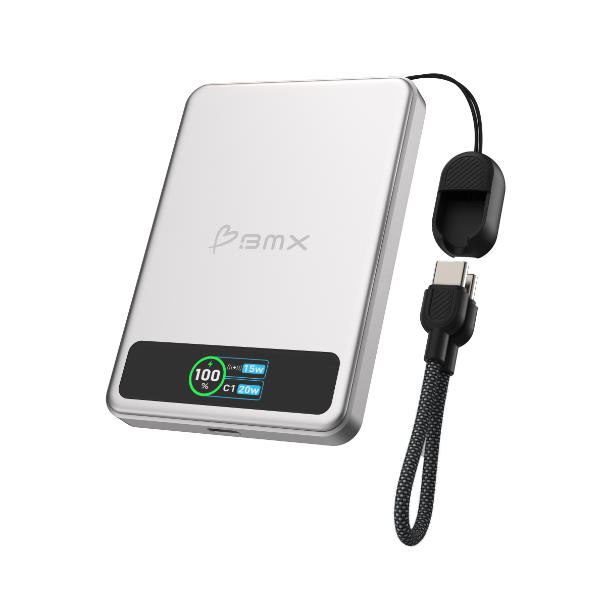 Pin sạc dự phòng BMX Solid State Magsafe 5000mAh Qi2 Led tích hợp chuẩn sạc không dây Qi2 15W giúp đẩy nhanh tốc độ gấp 2 lần so với loại thông thường. Cổng USB-C 20W kết hợp cùng cáp sạc đi kèm hỗ trợ cung cấp nguồn điện cho các thiết bị máy tính bảng hoặc phụ kiện khác.