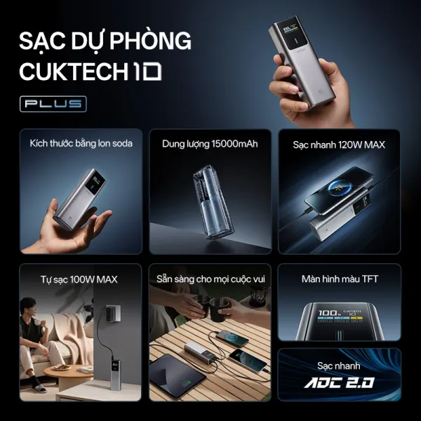 Pin sạc dự phòng Cuktech P Series No-10 Plus 2C1A 15000mAh 100W PB150P mang đến giải pháp năng lượng mạnh mẽ, phù hợp khi sử dụng trong mọi tình huống. Thiết kế hiện đại, tiện lợi cùng khả năng sạc nhanh vượt trội sẽ đáp ứng tốt nhu cầu cho nhiều thiết bị.