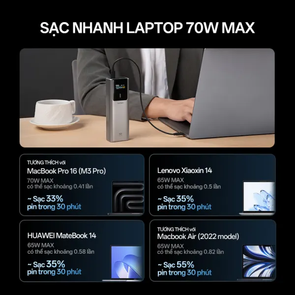 Đặc biệt, dung lượng định mức 8300mAh, giúp người dùng nhận được nguồn năng lượng thực tế ổn định và lâu dài. Đây là con số quan trọng, phản ánh hiệu suất hoạt động thực tế khi sạc cho nhiều loại thiết bị khác nhau.
