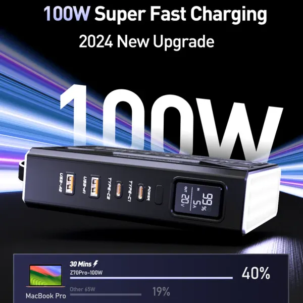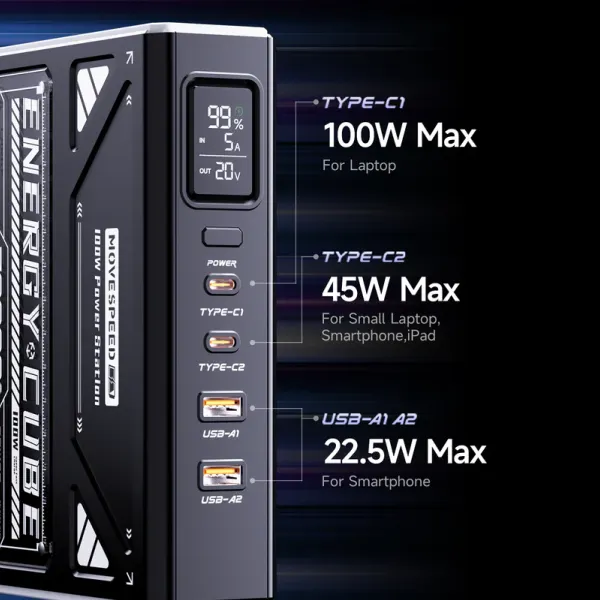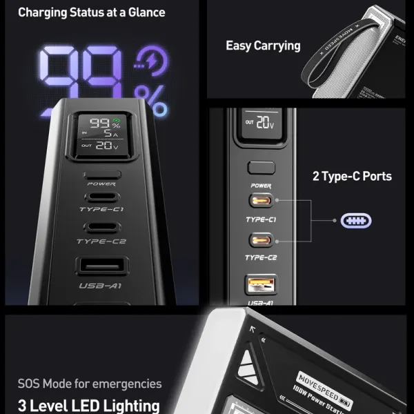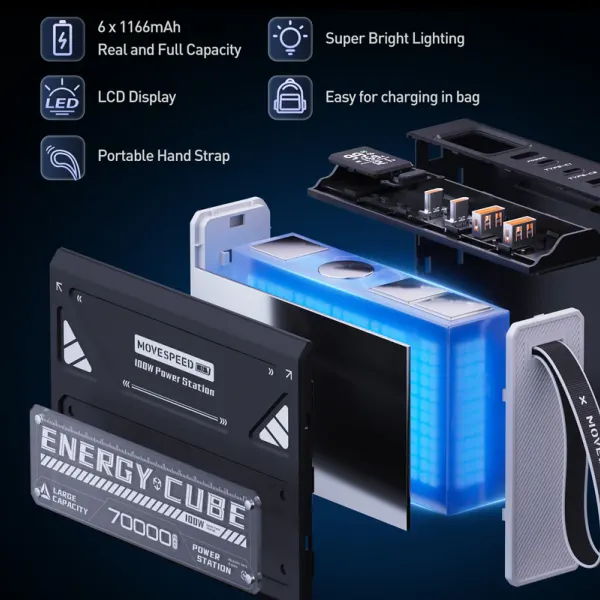 Pin dự phòng MoveSpeed 70000mAh 145W 2C2A tích hợp màn hình, đèn pin LED, SOS mode Z70Promax