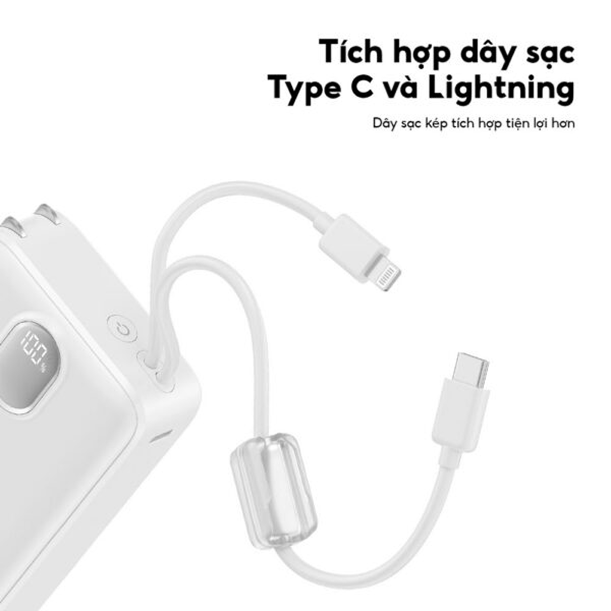 Được tích hợp cáp USB-C trực tiếp trên thân, phụ kiện này mang lại kết nối và nạp năng lượng thuận tiện hơn. Stargo GEM 3 10000mAh 22.5W còn đi kèm cáp Lightning thích hợp cho nhiều dòng điện thoại khác nhau.