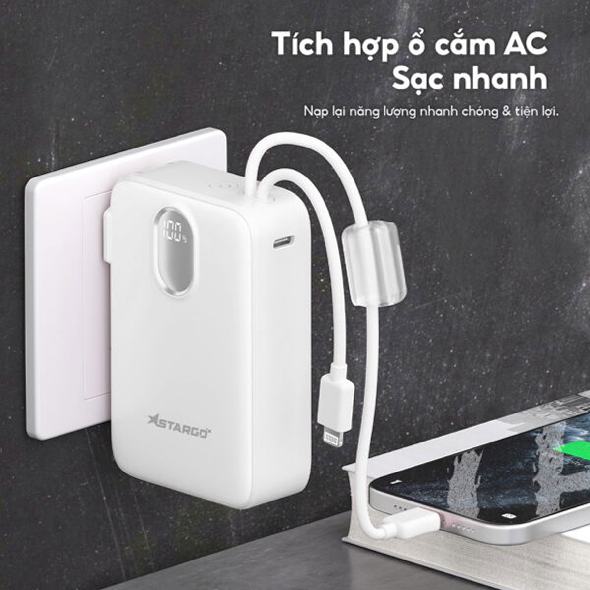 Tích hợp đầu AC ghim trực tiếp vào ổ điện