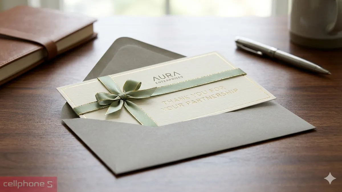 Tặng quà kèm thiệp chúc mừng từ ban lãnh đạo